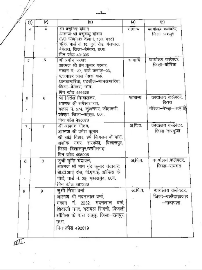 रायपुर। छत्तीसगढ़ सरकार ने राज्य लोक सेवा आयोग के जरिए चयनित हुए नायब तहसीलदार की पदस्थापना के आदेश राजस्व एवं आपदा प्रबंधन विभाग द्वारा जारी किए है।