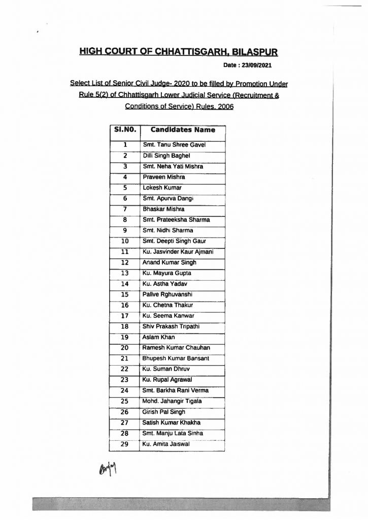 ( CHHATTISGARH LOWER JUDICIAL SERVICE RULES 2006) के तहत यह पदोन्नति दी गयी है। इस संबंध में प्रभारी रजिस्ट्रार जनरल संजय कुमार जायसवाल ने आदेश जारी किया है।