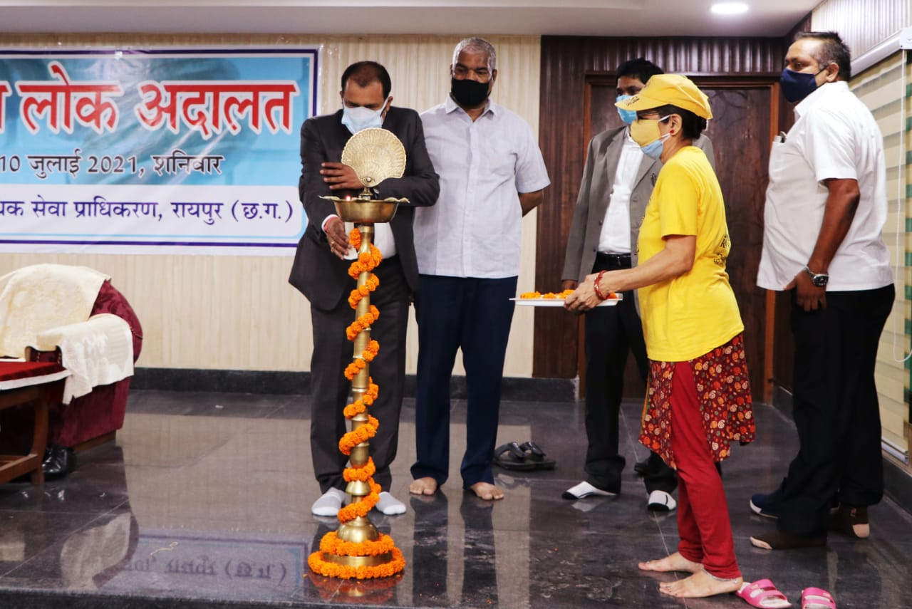 छ.ग.राज्य विधिक सेवा प्राधिकरण बिलासपुर के कार्यपालक अध्यक्ष न्यायमूर्ति श्री प्रशांत कुमार मिश्रा के निर्देश पर एवं जिला विधिक सेवा प्राधिकरण रायपुर के अध्यक्ष जिला न्यायाधीश श्री अरविंद कुमार वर्मा के मार्गदर्शन में शनिवार को नेशनल लोक अदालत जिला न्यायालय रायपुर एवं रायपुर जिले के अन्य तहसील न्यायालयों में हुई।
