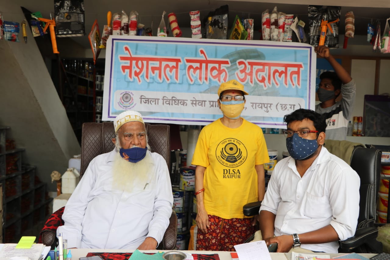 रायपुर जिला न्यायालय द्वारा नेशनल लोक अदालत में एक अनोखा प्रयोग किया गया, जो संभवतः देश में अपनी तरह का पहला उदाहरण होगा। छ.ग. राज्य विधिक सेवा प्राधिकरण, बिलासपुर के कार्यपालक अध्यक्ष, न्यायमूर्ति श्री प्रशान्त कुमार मिश्रा के द्वारा वीडियो कान्फ्रेसिंग के माध्यम से सभी प्राधिकरणों को यह संदेश दिया गया कि, महामारी के दौर में हो रहे इस नेशनल लोक अदालत में अधिक से अधिक लोगों को हर तरह से राहत पहुंचाने का काम किया जाये और लोगों की न्याय पाने में हर तरह से मदद की जाये।